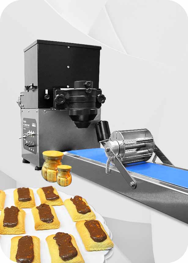 A Le Biscuit produz biscoitos em formatos quadrado ou retangular, cortados diretamente pela máquina, com textura em relevo na superfície, criada pelos bicos modeladores.